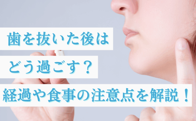 スタッフブログその他予防歯科「歯を抜いた後は、何日くらい痛みが続くのか」「食事や入浴はいつも通りできるのか」特に初めて抜歯をする方は、このような不安を抱えることが少なくありません。歯を抜いた後は痛みや腫れが治まるまで、無理せず生活することが重要です。この記事では、抜歯...